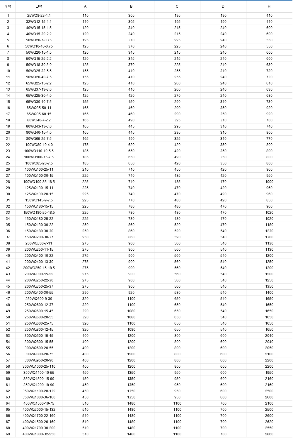 WQ型污水污物潛水泵,還采用不銹鋼葉輪及國(guó)內(nèi)先進(jìn)的機(jī)械密封裝置,使用壽命達(dá)3000小時(shí)以上。該泵廣泛適用于抽送排放工業(yè)與生活廢水、污水,包括含有紙漿、木榍、淀粉、泥砂、碎石、短纖維等渣漿,固體的也液體及尿糞等,是工業(yè)、農(nóng)業(yè)、城市、建筑行業(yè)理想的給排污水工具。