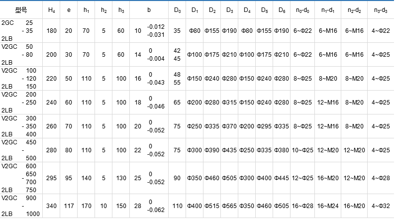 2GC、2LB雙螺桿泵及泵組外型和安裝尺寸表